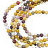 These round Moukite Jasper beads are 6mm in size. They are a mixture of tans, browns, maroon, white and mauve colors. Sold per strand.